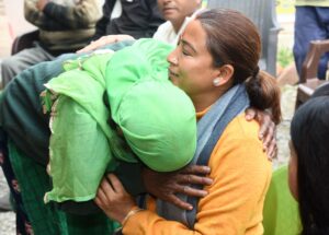 मंत्री के गले लगा कर फूट कर रो पड़ी महिला