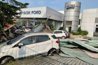 मोहब्बेवाला में बेकाबू ट्रक फोर्ड शोरूम में घुसा, दीवार तोड़ी, कई गाड़ियाँ…
