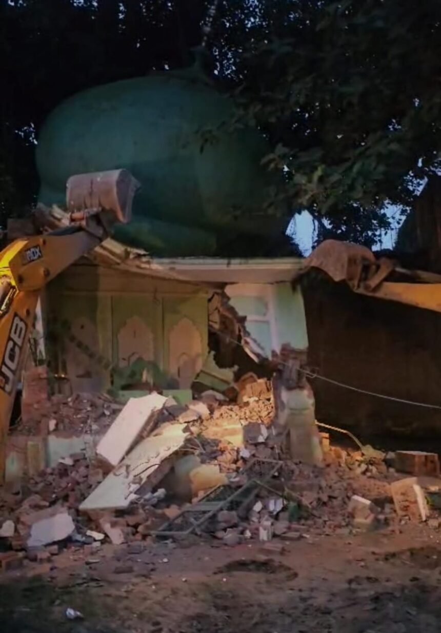 आज तड़के भारी फोर्स के साथ प्रशासन ने उक्त धार्मिक संरचना को एसडीएम अभय प्रताप सिंह के नेतृत्व में ध्वस्त कर दिया गया। प्रशासन ने बुल्डोजर के साथ की गई इस कारवाई के बाद उक्त मलबा सम्मान पूर्वक हटा दिया ।