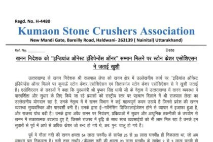 खनन निदेशक को इन्डियांज आनेस्ट इंडिपेन्डेंस आनर सम्मान मिलने पर स्टोन क्रेशर…