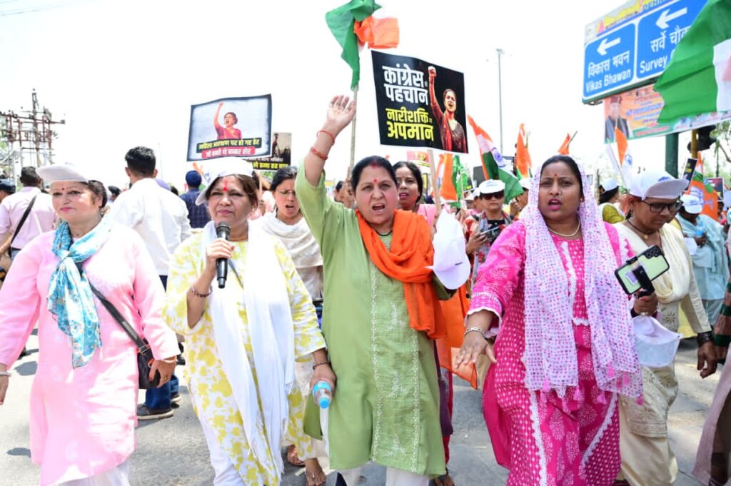 उन्होंने कहा विपक्ष ने षड्यंत्र करके नारी शक्ति का अधिकार छिनने का काम किया है। उन्होंने कहा देश की नारी, अन्याय के विरुद्ध अवश्य आवाज उठाएगी क्योंकि अब नारी अपने अधिकारों के प्रति सजग हो चुकी है।